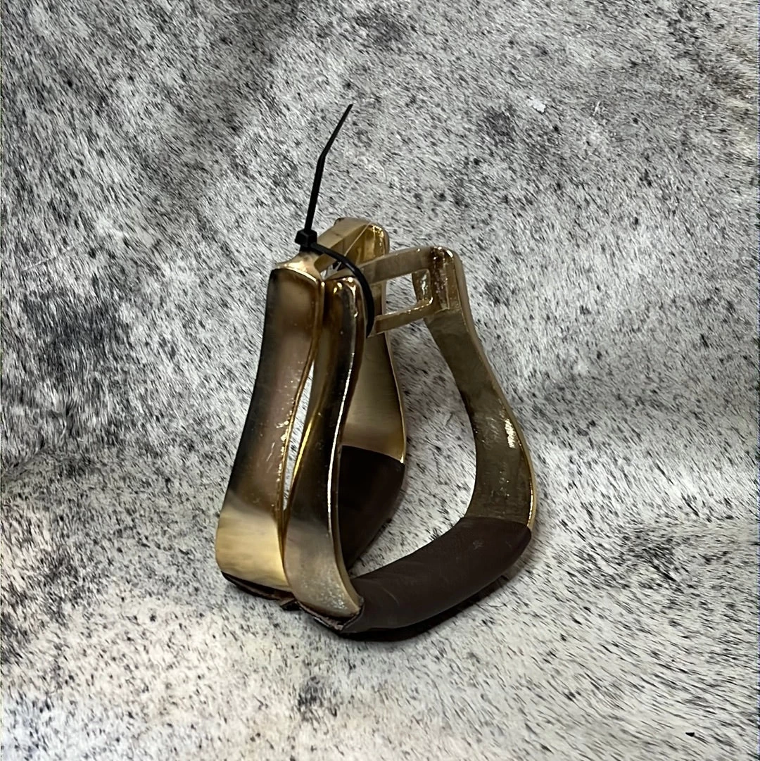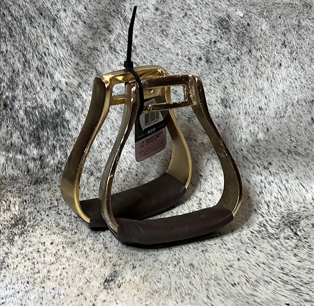 Crafted from polished brass ionized aluminum with 2″ leather foot tread. Lightweight with a 2″ neck.