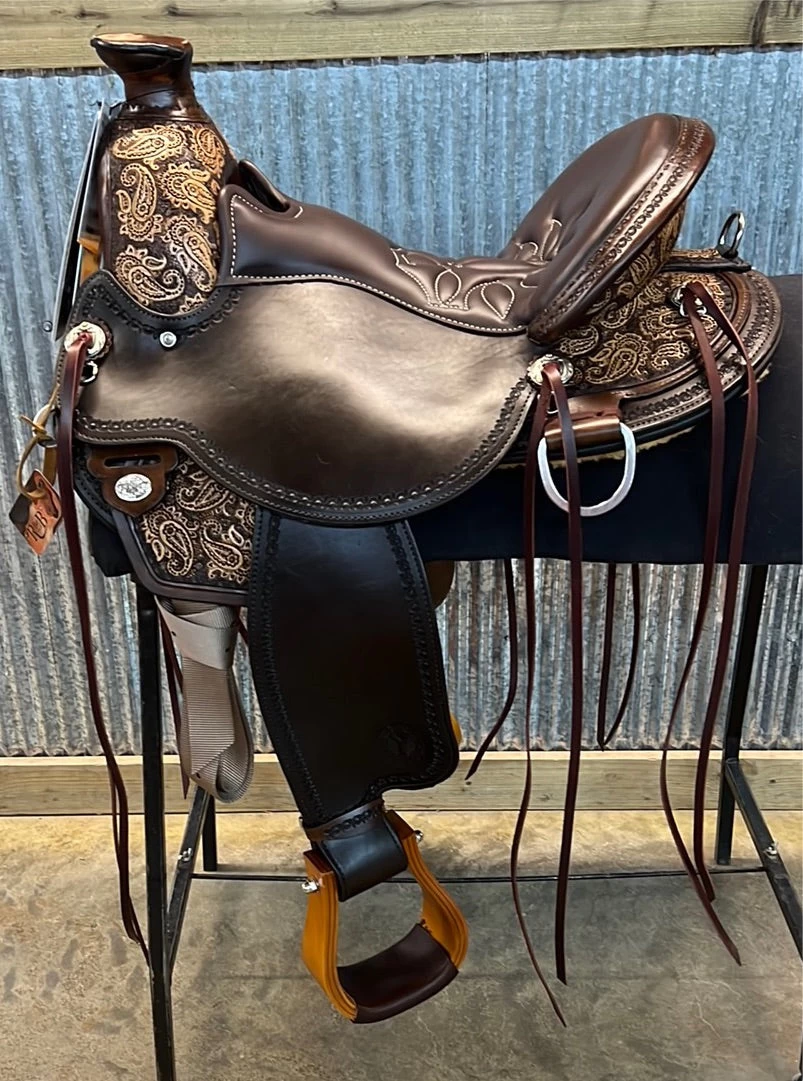 Built on the popular A fork tree, the wade look and comfort is paired with intricate paisely tooling and highlighted with a vintage finish.
