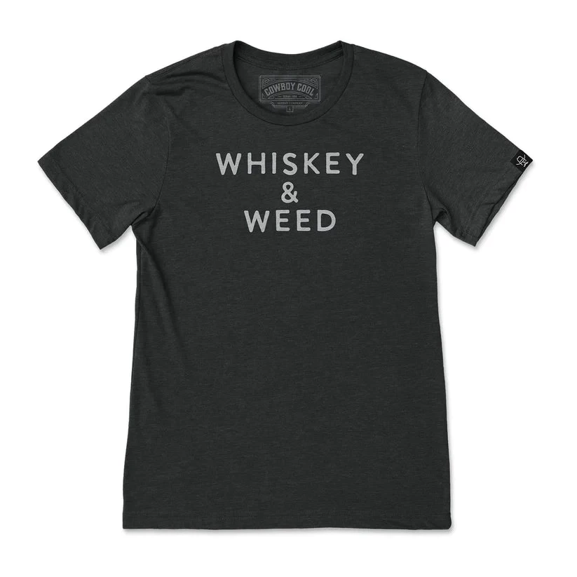 Introducing the Whiskey & Weed T-shirt! This unique shirt is perfect for any fan of fine spirits and herbal refreshments. Made from a lightweight poly/cotton blend, it’s extremely comfortable and features a crew neck and modern fit. The front chest design is sure to turn heads, whether you’re out on the town or hitting the trails. So grab one today and add a little spice to your life!