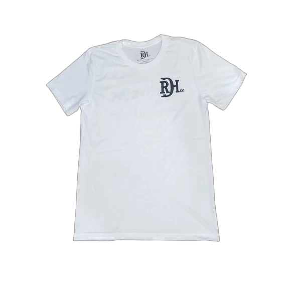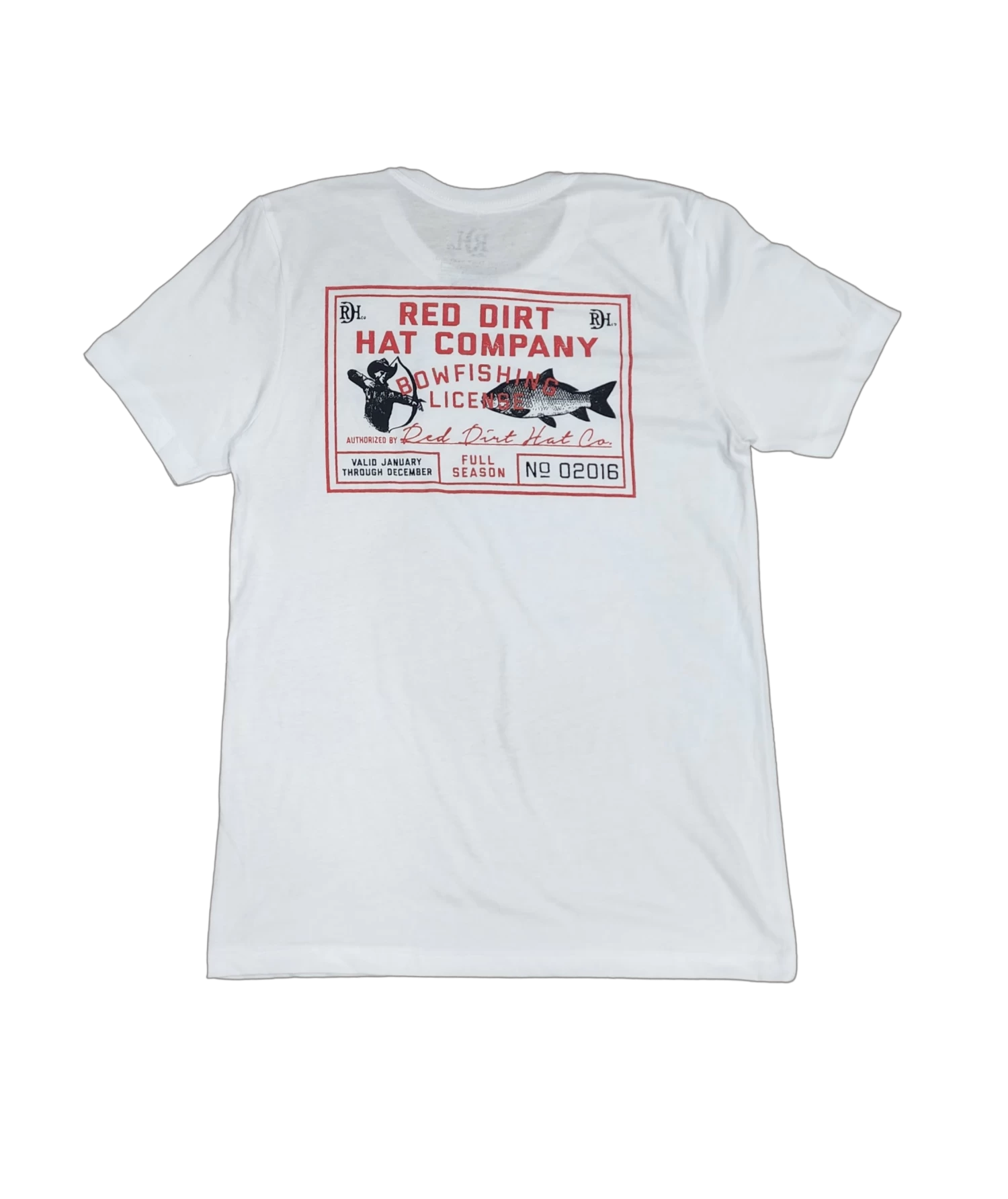 Unisex solid white t-shirt featuring the new and exclusive “Bowfishing” design, as well as the signature RDH brand on the left sleeve.