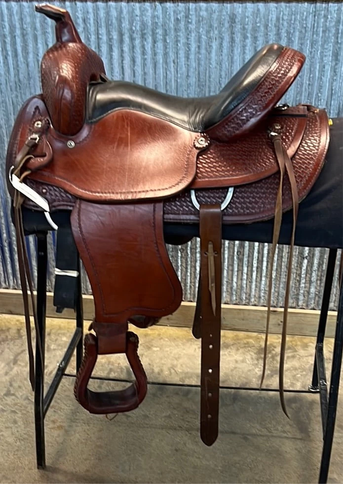Mahogany 1/2 tool basket stamp with black smoothout seat, smooth jockey and fender