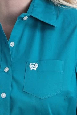 solid cotton-spandex plain weave, long sleeve button-down, white buttons