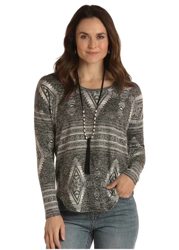 WLWT52R024 long sleeve Aztec black and white printed top EFOU-EE