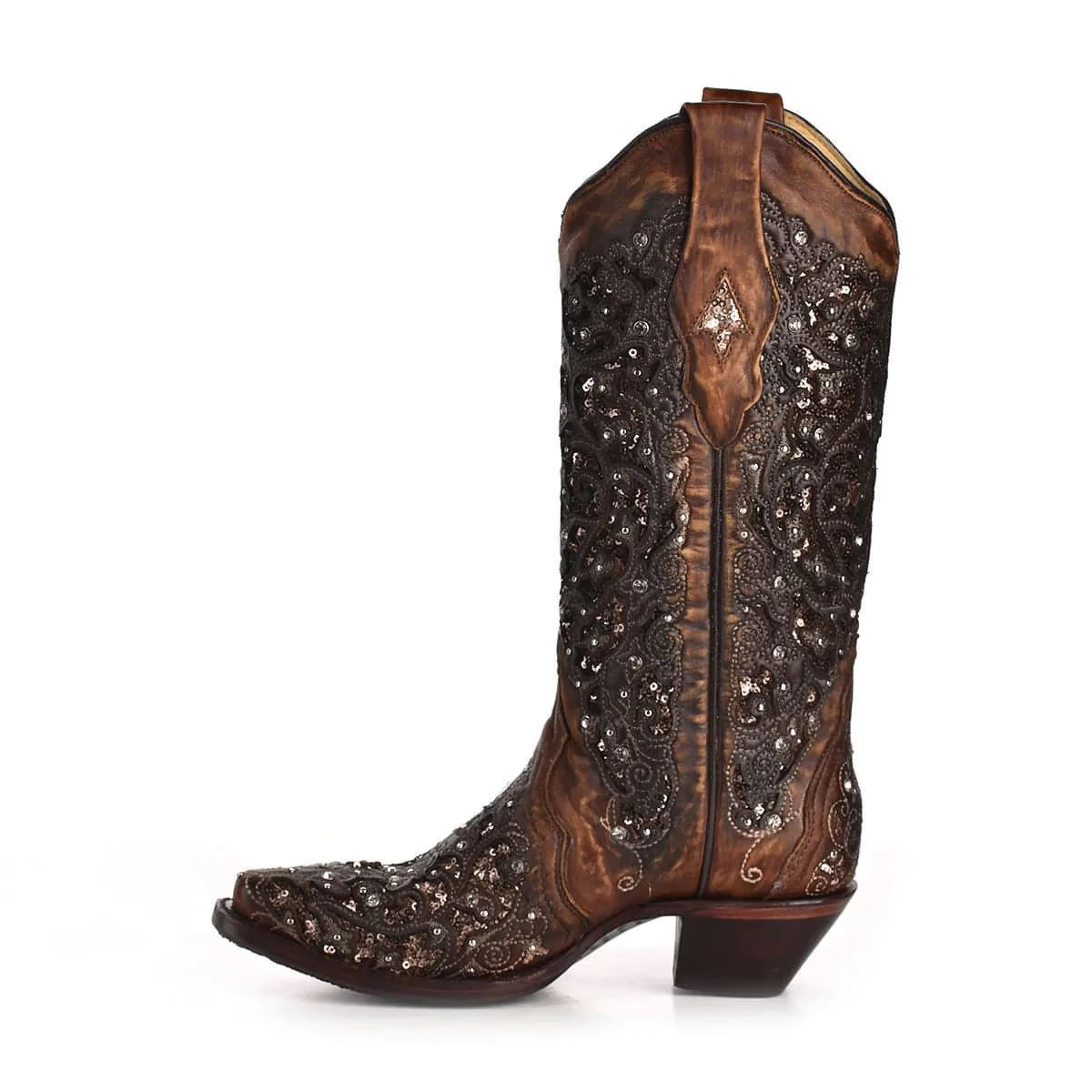 Stylish, stunning, and shimmery. Gorgeous and comfortable cognac boots are just what you need to complement that dress, shorts, or jeans.