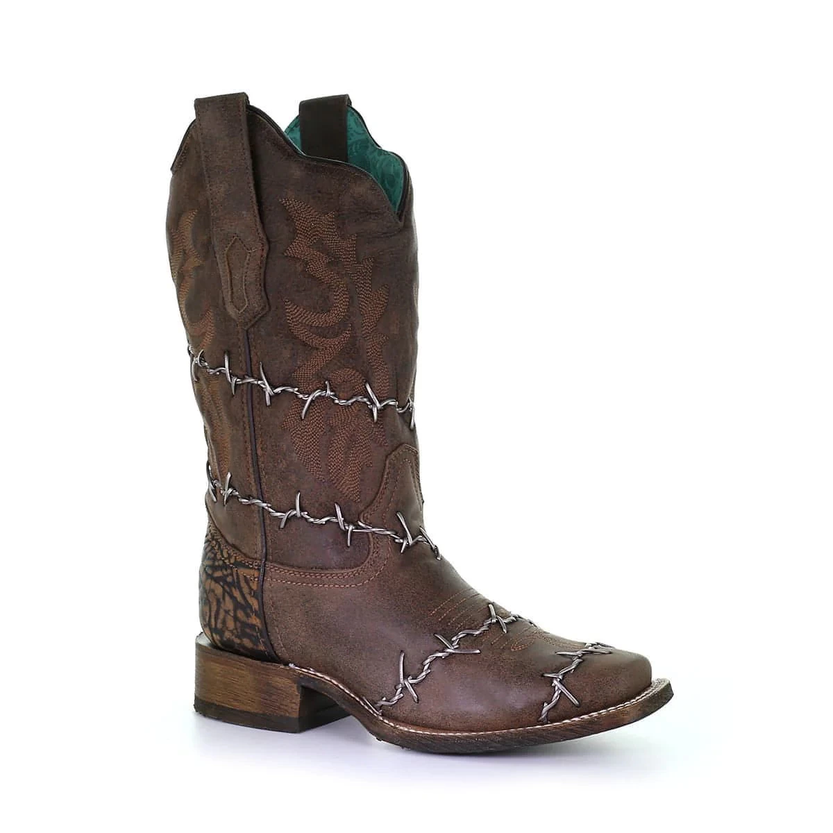 LD Brown Barbed Wire Woven Square Toe Rodeo