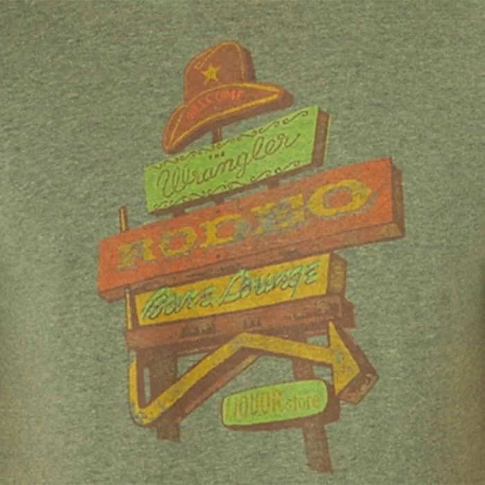 This Men’s Wrangler Shirt is perfect for a western guy or road-trip junkie. The front of the tee has a vintage road sign print, at the junction of a rodeo and a bar lounge. Wrangler’s super-soft fabric will make it feel like it’s been yours for years.